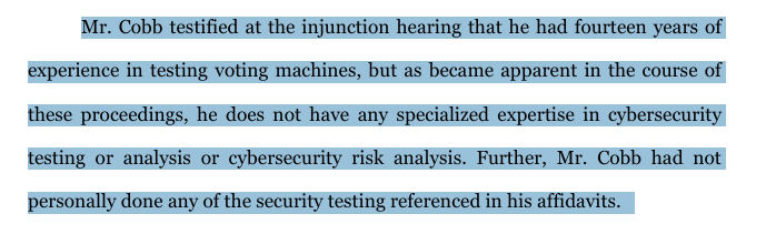 P.S. Cobb straight-up admitted in court that he has zero background in cybersecurity. He had no choice but to come clean after botching technical testimony under oath in Curling v. Raffensperger.